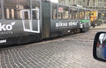 На сторінці громадської організації «Варта 1» в інтернет-мережі «Facebook» опублікували фото трамваю, який зійшов із рейок на перетині вулиць Бандери й Русових.
