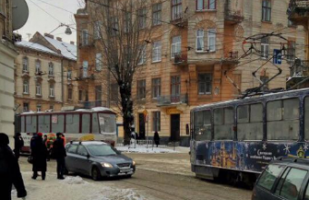 «Сихівські» трамваї зупинилися на вулиці Івана Франка біля Стрийського ринку.
