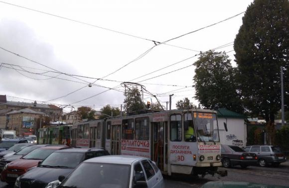 Електротранспорт простоює на площі Ярослава Осмомисла.
