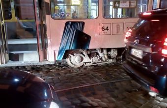 У четвер, 16 січня, на площі Івана Франка у Львові з'їхав із рейок трамвай №4.