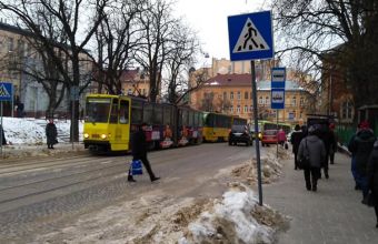 У Львові зупинилися біля польського генконсульства трамваї