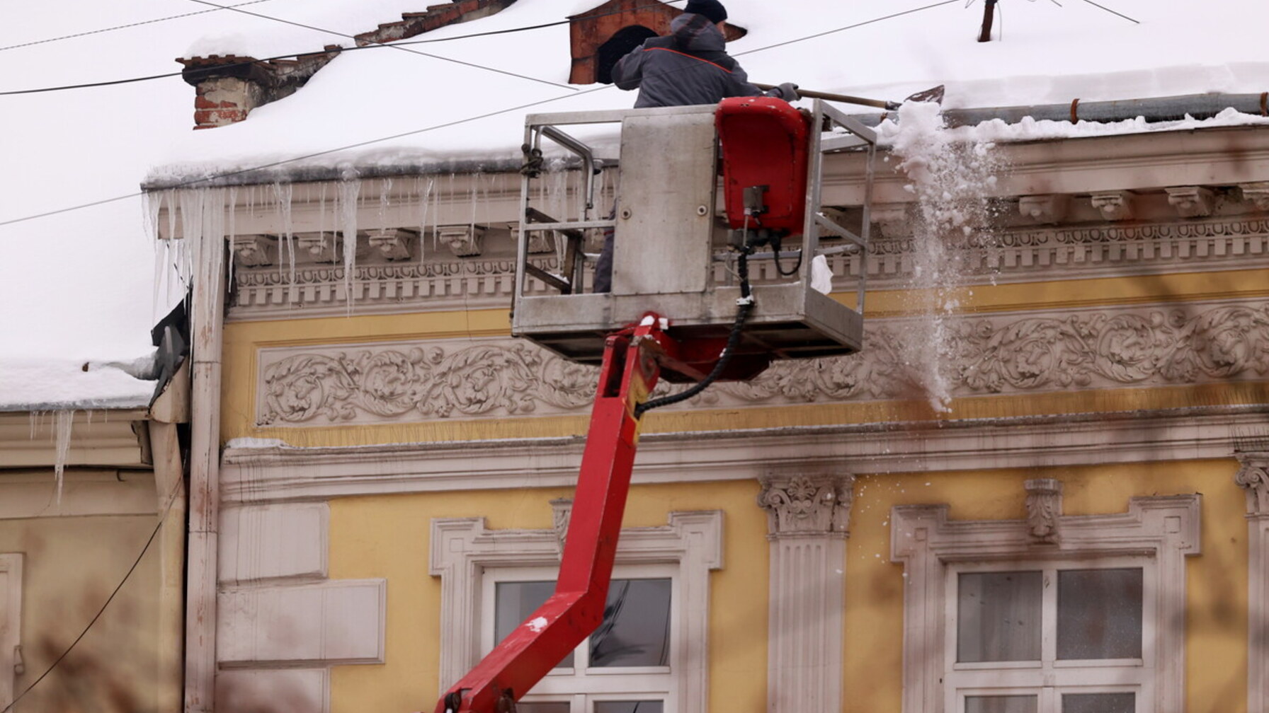 «Роботи з чистки дахів відбуваються у всіх районах міста вже два тижні. Щодня фактично працює 35 бригад, у складі яких є 18 автовишок і 15 альпіністів. Загалом вже вдалося очистити 1200 дахів.
