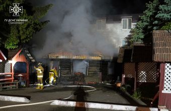 О 03:27 пожежу локалізовано та о 03:41 ліквідовано в складі 5-ти ланок газодимозахисної служби. Вогнем знищено дерев`яну альтанку та кухонне обладнання в приміщенні їдальні пансіонату на площі 120 м кв. Пошкоджено сусідню альтанку на площі 6 м кв.