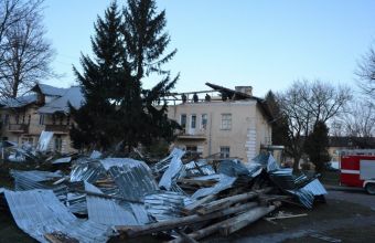«11 січня о 02:46 у м. Новий Калинів Самбірського району по вул. Авіаційній, 2 сильними поривами вітру з двоповерхового будинку зірвано дах з металевою покрівлею. Жертв та постраждалих немає.