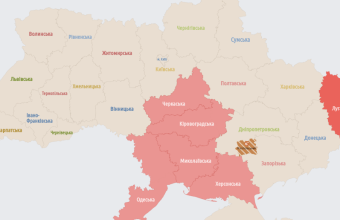 Повітряна тривога оголошена в Одеській, Миколаївській, Херсонській, Кіровоградській і Черкаській областях.
