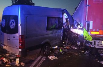 В результаті зіткнення мікроавтобуса та вантажівки, 33-річна пасажирка Volkswagen Transporter загинула на місці. Після аварії вісім громадян України, які їхали мікроавтобусом, були доставлені до лікарні, двоє людей мають тілесні ушкодження.