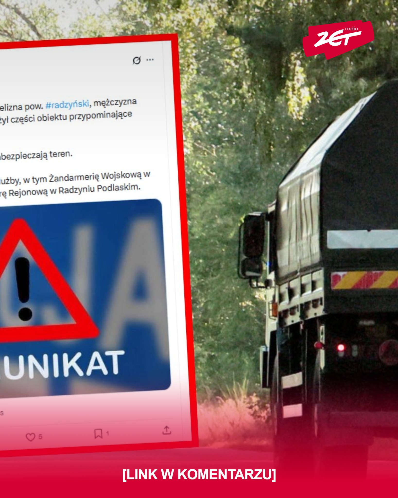 Військова жандармерія Польщі спільно з поліцією проводить огляд місця події в населеному пункті Желізна в Люблінському воєводстві після виявлення уламків літального об’єкта, який, за попередніми ознаками, може бути дроном.