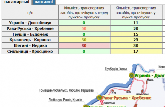 У прикордонних пунктах пропуску на Львівщині стоять 118 транспортних засобів, а перед ними – 160.