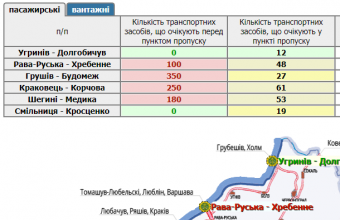 У прикордонних автомобільних пунктах пропуску на Львівщині стоять у чергах 220 транспортних засобів.