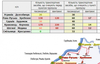 335 транспортних засобів очікують у пунктах пропуску на Львівщині, а ще 810 скупчилися перед ними.