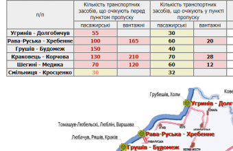 342 транспортні засоби очікують у пунктах пропуску на Львівщині, а ще 820 скупчилися перед ними.
