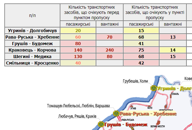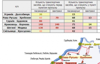 331 транспортний засіб очікує в прикордонних автомобільних пунктах пропуску на Львівщині, а ще 860 скупчилися перед ними.