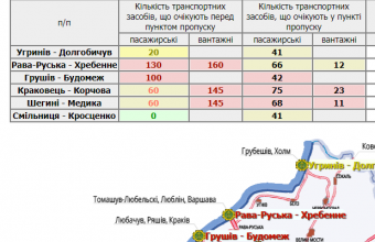 379 транспортних засобів очікують у пунктах пропуску на Львівщині, а ще 820 скупчилися перед ними.