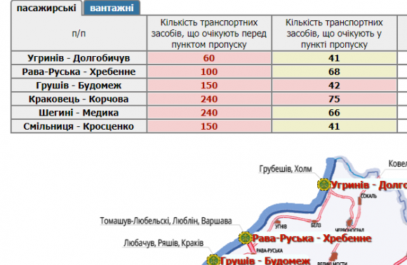 333 автомобілів скупчилися в прикордонних пунктах пропуску на Львівщині, а ще 940 – перед ними.