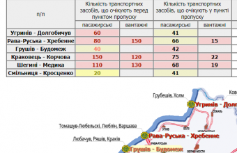 389 транспортних засобів очікують у пунктах пропуску на Львівщині, а ще 940 скупчилися перед ними.