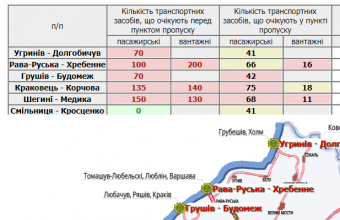 378 транспортних засобів очікують у пунктах пропуску на Львівщині, а ще 975 скупчилися перед ними.
