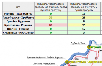 93 транспортні засоби очікують у пунктах пропуску на Львівщині, а ще 90 скупчилися перед ними.