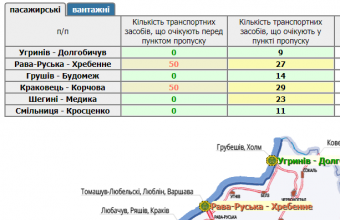 У прикордонних автомобільних пунктах пропуску на Львівщині стоять у чергах 113 транспортних засобів.