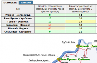 У прикордонних автомобільних пунктах пропуску на Львівщині стоять у чергах 90 транспортних засобів.