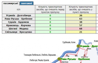 У прикордонних автомобільних пунктах пропуску на Львівщині 253 транспортні засоби.