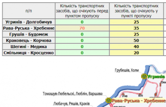 195 транспортних засобів стоять у чергах у пунктах пропуску на Львівщині, ще 70 вишикувалися перед пунктом пропуску «Рава-Руська».