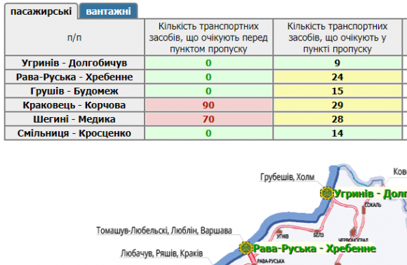 У прикордонних автомобільних пунктах пропуску на Львівщині стоять у чергах 120 транспортних засобів.