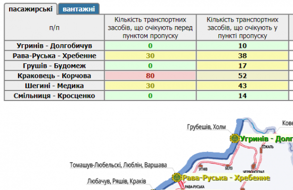 У прикордонних автомобільних пунктах пропуску на Львівщині стоять у чергах 184 транспортних засобів.