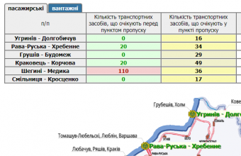 У прикордонних автомобільних пунктах пропуску на Львівщині стоїть 181 транспортний засіб, в ще 150 – перед ними.