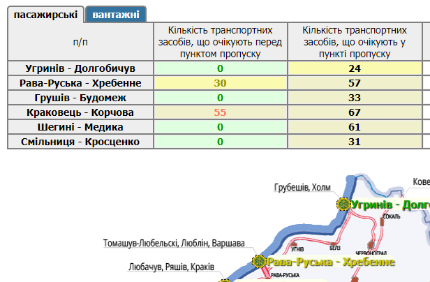У прикордонних автомобільних пунктах пропуску на Львівщині скупчилися 273 транспортні засоби.