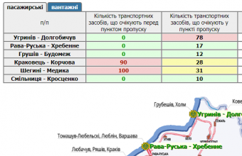 У прикордонних автомобільних пунктах пропуску на Львівщині стоять у чергах 176 транспортних засобів.