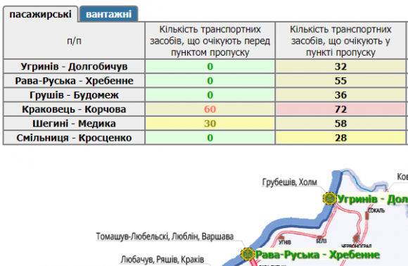 281 автомобіль скупчився в прикордонних пунктах пропуску на Львівщині, ще 90 – перед ними.