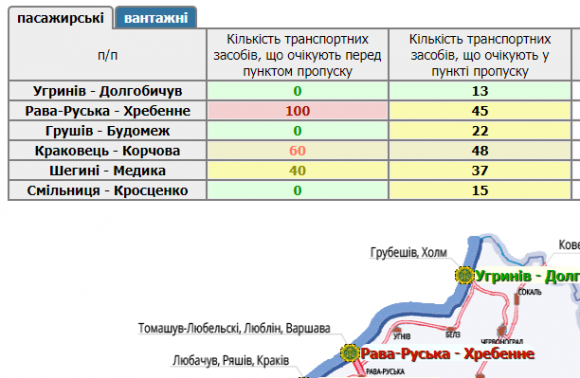 У прикордонних автомобільних пунктах пропуску на Львівщині стоять у чергах 180 транспортних засобів.
