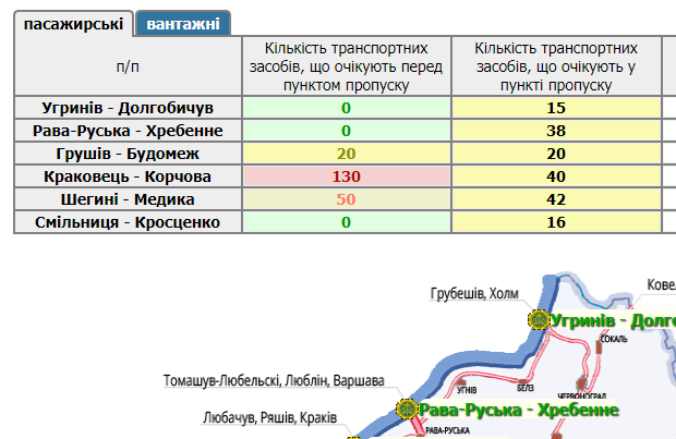 У прикордонних автомобільних пунктах пропуску на Львівщині – 191 транспортний засіб. Ще 200 скупчилися перед пунктами пропуску.