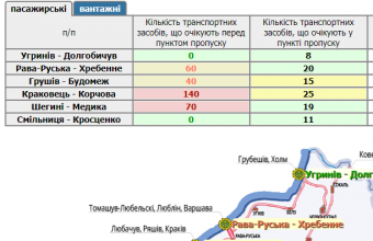 У прикордонних автомобільних пунктах пропуску на Львівщині стоять у чергах 98 транспортних засобів.