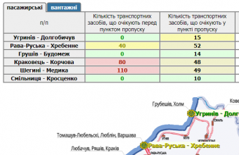 У прикордонних автомобільних пунктах пропуску на Львівщині стоять у чергах 188 транспортних засобів.