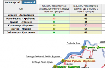 292 автомобілі очікують у прикордонних автомобільних пунктах пропуску на Львівщині, а ще 120 скупчилися перед ними.