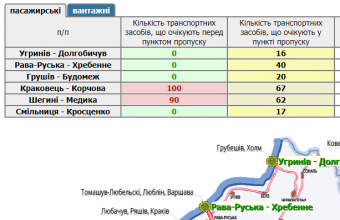 У прикордонних автомобільних пунктах пропуску на Львівщині стоять у чергах 222 транспортних засобів.