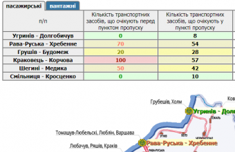 У прикордонних автомобільних пунктах пропуску на Львівщині стоять у чергах 179 транспортних засобів.