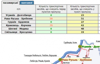 У прикордонних автомобільних пунктах пропуску на Львівщині стоять у чергах 310 транспортних засобів.