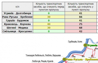 333 транспортні засоби очікують у пунктах пропуску на Львівщині, а ще сто скупчилися перед ними.