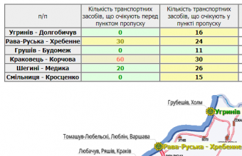333 транспортні засоби очікують у пунктах пропуску на Львівщині, а ще 110 скупчилися перед ними.