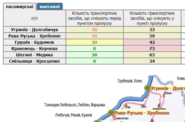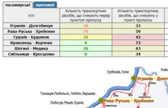У прикордонних автомобільних пунктах пропуску на Львівщині скупчилися 305 транспортних засобів. Ще 140 стоять перед пунктами пропуску.