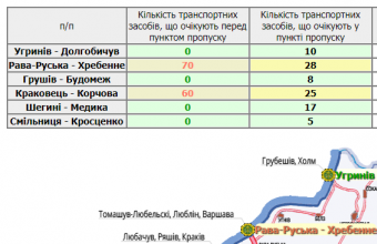 335 транспортних засобів очікують у пунктах пропуску на Львівщині, а ще 130 скупчилися перед ними.