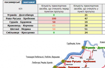200 транспортних засобів очікують у прикордонних автомобільних пунктах пропуску на Львівщині, а ще 265 скупчилися перед ними.