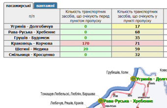 У прикордонних автомобільних пунктах пропуску на Львівщині стоять 282 транспортні засоби. Ще 190 скупчилися перед пунктами пропуску.