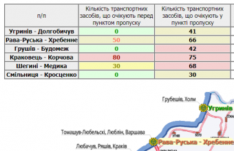 322 транспортні засоби очікують у пунктах пропуску на Львівщині, а ще 160 скупчилися перед ними.