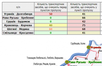 333 транспортні засоби очікують у пунктах пропуску на Львівщині, а ще 150 скупчилися перед ними.