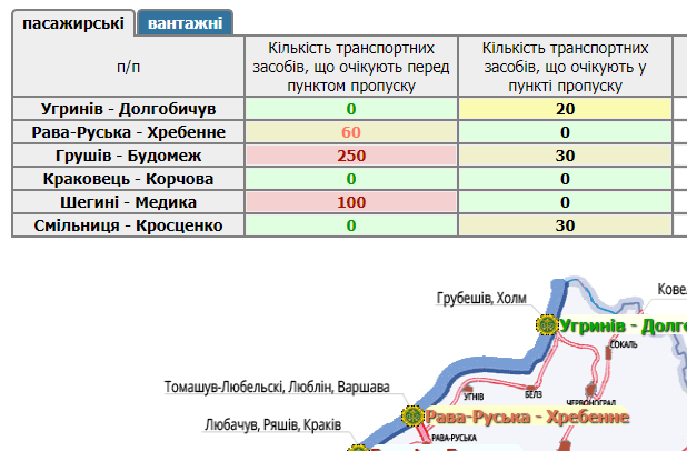 80 автомобілів скупчилися в прикордонних пунктах пропуску на Львівщині, ще 410 – перед ними.