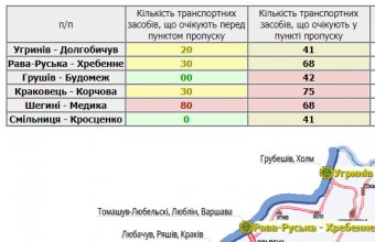 333 транспортні засоби очікують у пунктах пропуску на Львівщині, а ще 160 стоять перед ними.