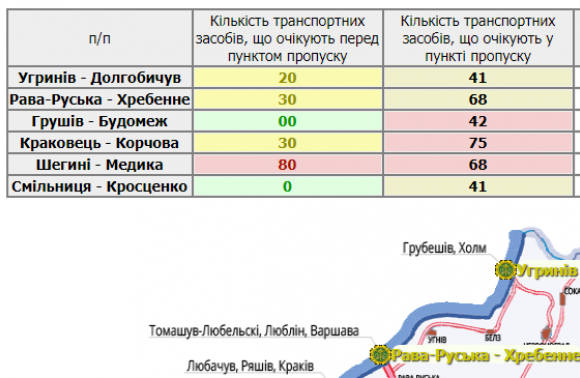 333 транспортні засоби очікують у пунктах пропуску на Львівщині, а ще 160 стоять перед ними.